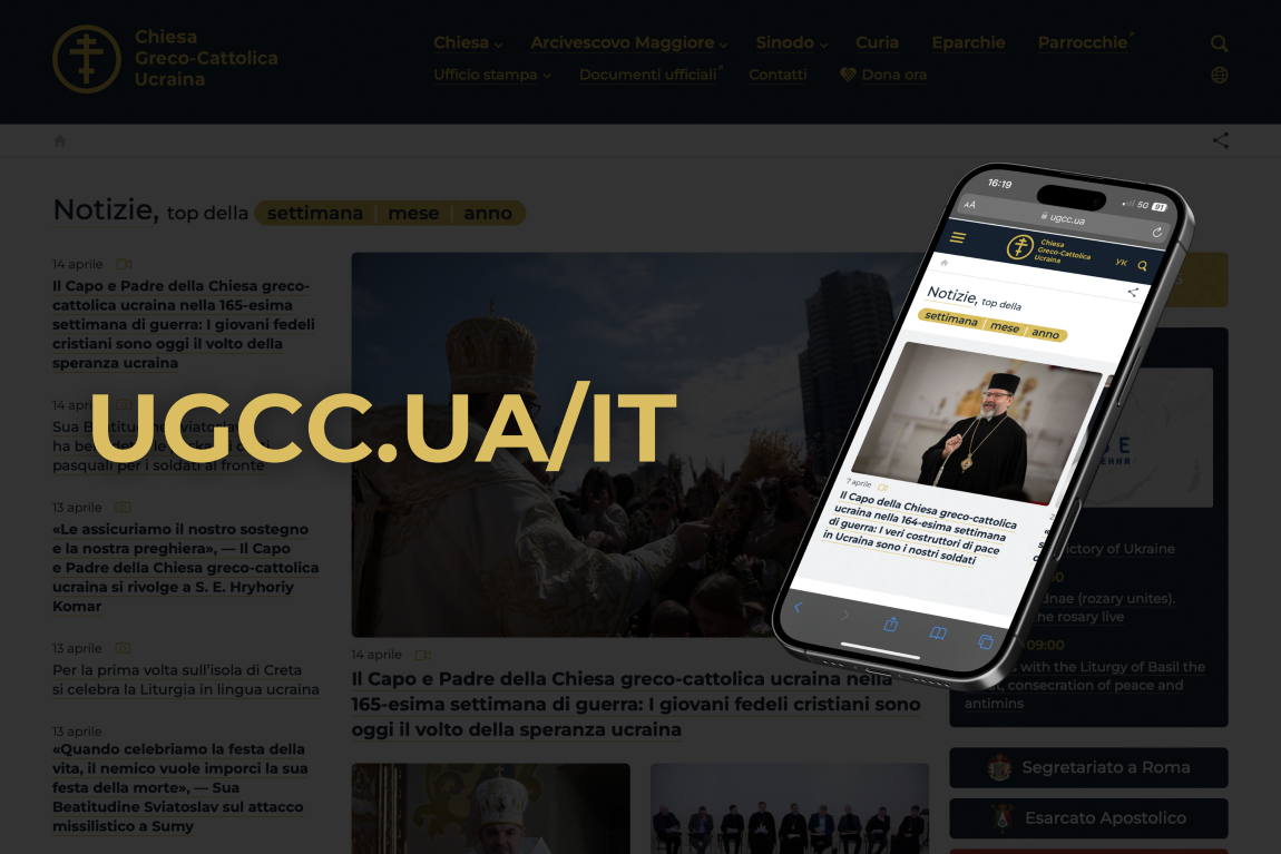 У вівторок, 15 квітня 2025 року, стартувала італомовна версія сайту УГКЦ — ugcc.ua/it. Відтепер новини, анонси, публікації та інші матеріали про її служіння доступні для перегляду не лише українською та англійською, але й італійською мовою.