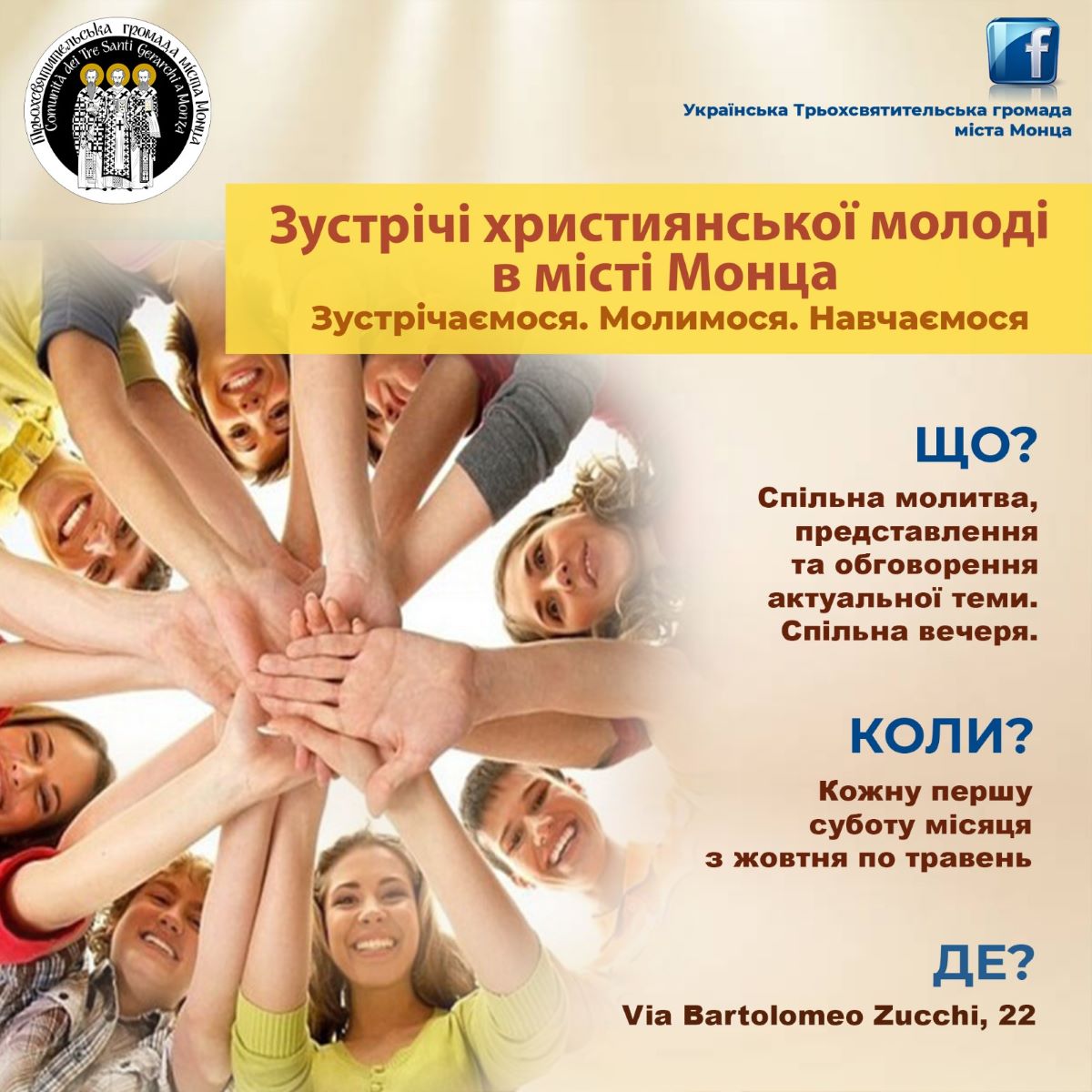 Запрошуємо на зустрічі християнської молоді при Трьохсвятительській громаді міста Монца.