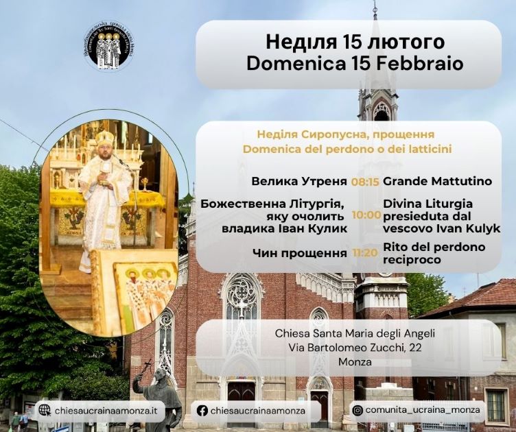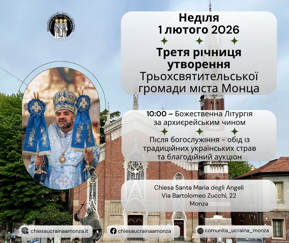 У неділю, 15 лютого 2026 року богослужіння в Трьохсвятительській громаді міста Монца очолить владика Іван Кулик, єпископ Кам'янець-Подільський.