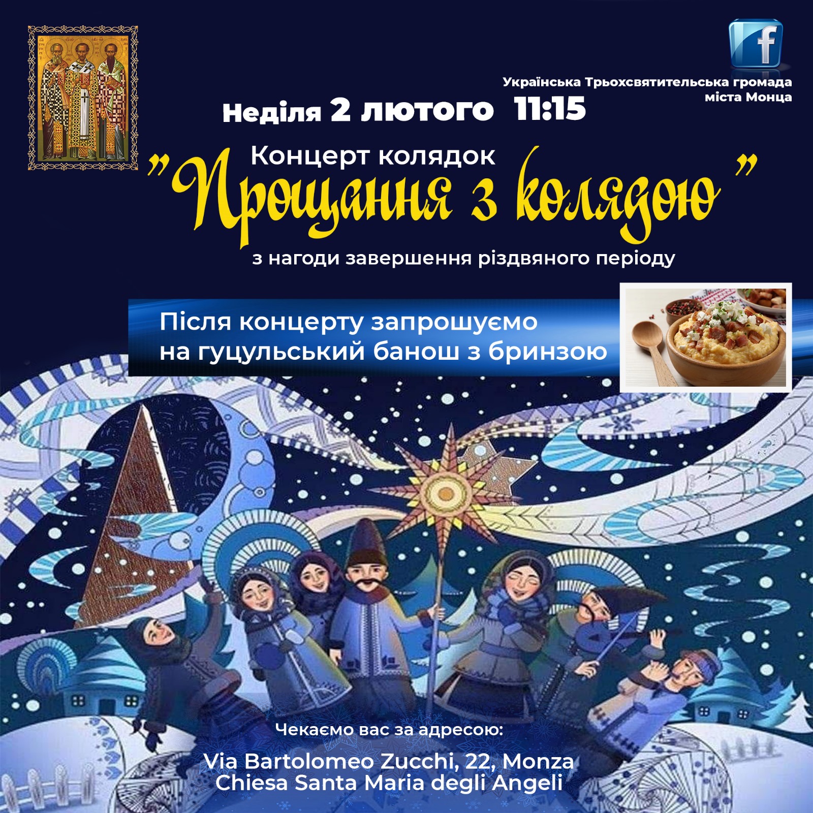 У неділю, 2 лютого 2025 року об 11:15 в храмі Santa Maria degli Angeli в місіт Монца (via Bartolomeo Zucchi, 22 Monza) відбудеться концерт колядок «Прощання з колядою».