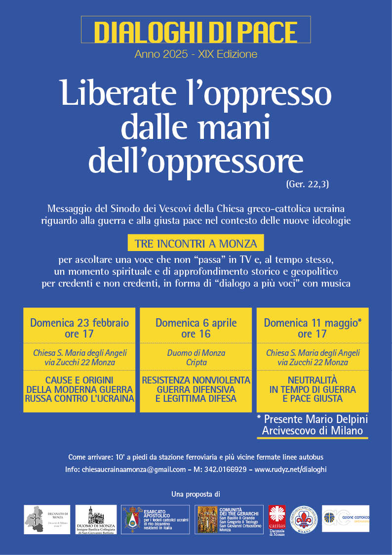 У м. Монца відбудеться представлення Послання Архиєрейського Синоду УГКЦ в Україні щодо війни та справедливого миру.