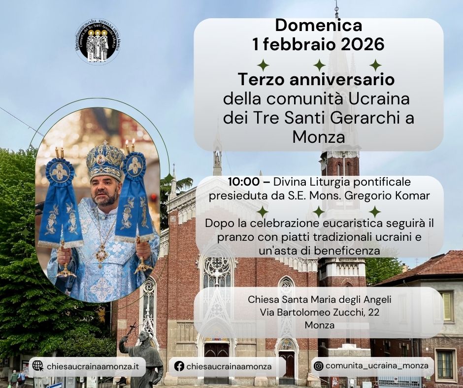 Domenica 15 febbraio 2026 le celebrazioni liturgiche nella comunità dei Tre Santi Gerarchi della città di Monza saranno presiedute dal vescovo Ivan Kulyk, Ordinario dell'eparchia di Kam’janec’-Podil’s’kyj.