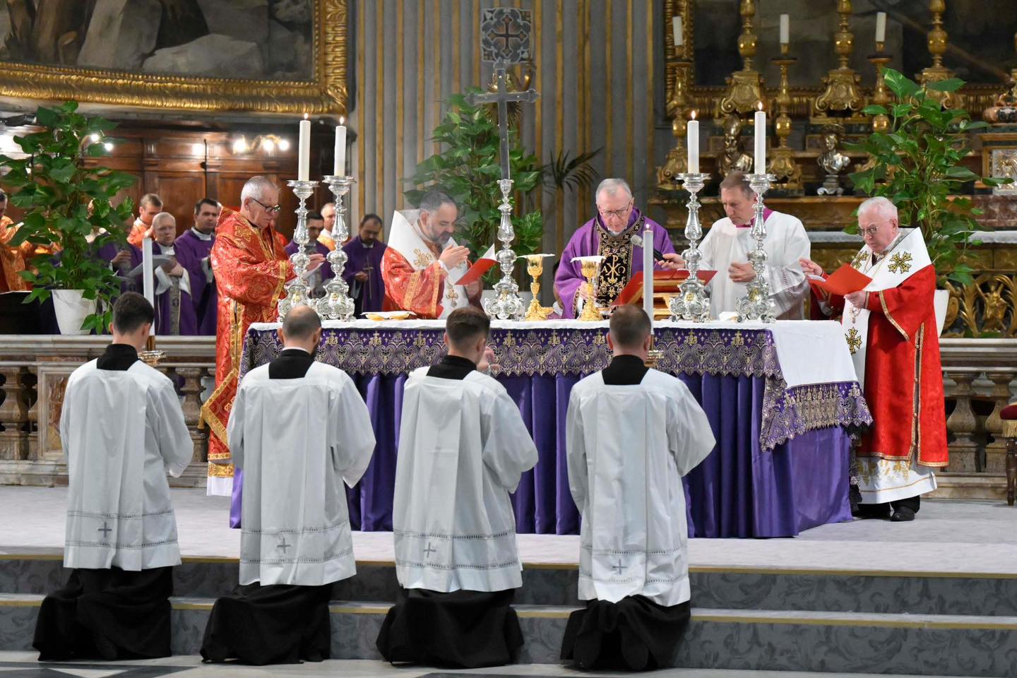 Il segretario di Stato celebra la Messa in suffragio delle vittime dell'Holodomor a Sant’Andrea della Valle. Nell’omelia condanna “ogni gesto che priva la popolazione civile della possibilità di vivere nella dignità”: “È un'offesa all'umanità”. A margine della celebrazione, rispondendo ai giornalisti, esprime la speranza che il piano di pace proposto da Trump possa aprire “vie di dialogo che permettano la fine di questa tragedia”
